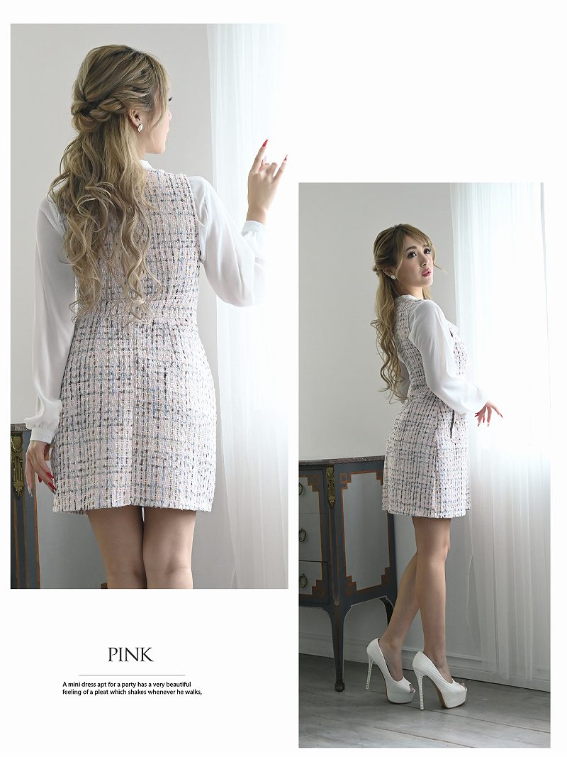 トレンドのMIXツイード素材を仕様した女性らしさUPのレイヤードセットアップはツイードジャンスカとブラウスそれぞれ単品使いできちゃう2wayキャバドレス♪